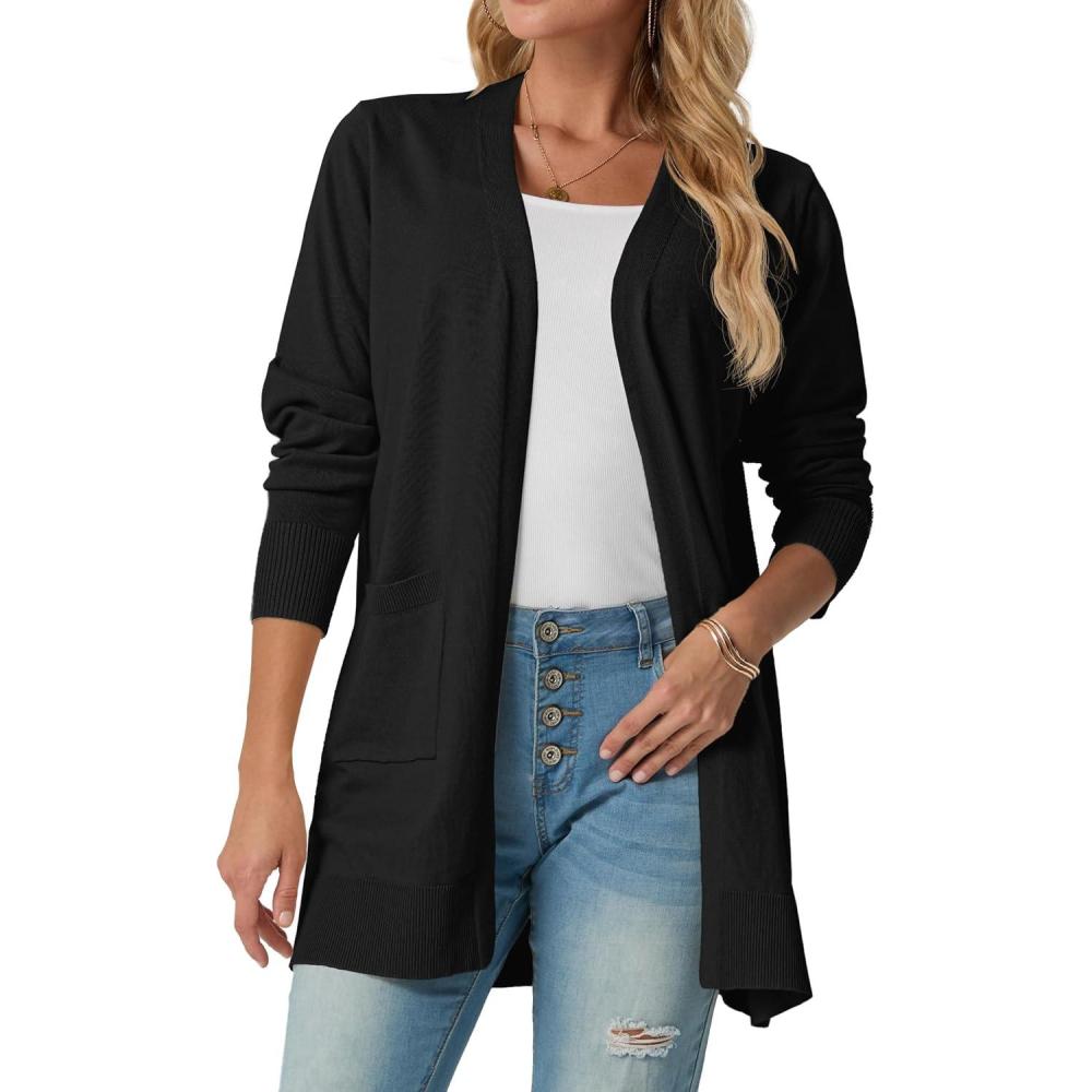 GRECERELLE Womens Lightweight Open Front Casual V-Neck Long Cardigan Sweater with Pockets, S-2XL(01 Black)