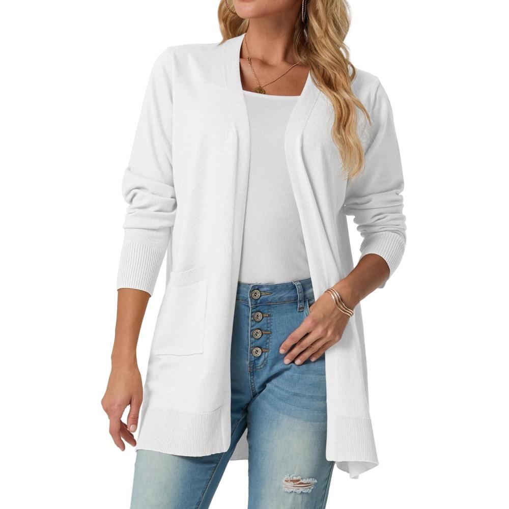 GRECERELLE Womens Lightweight Open Front Casual V-Neck Long Cardigan Sweater with Pockets, S-2XL(02 White)