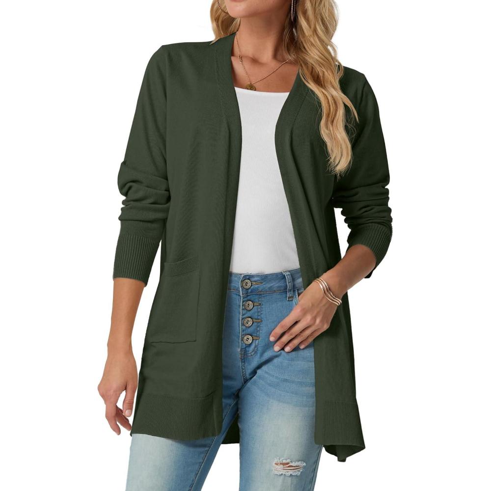 GRECERELLE Womens Lightweight Open Front Casual V-Neck Long Cardigan Sweater with Pockets, S-2XL(Army Green)