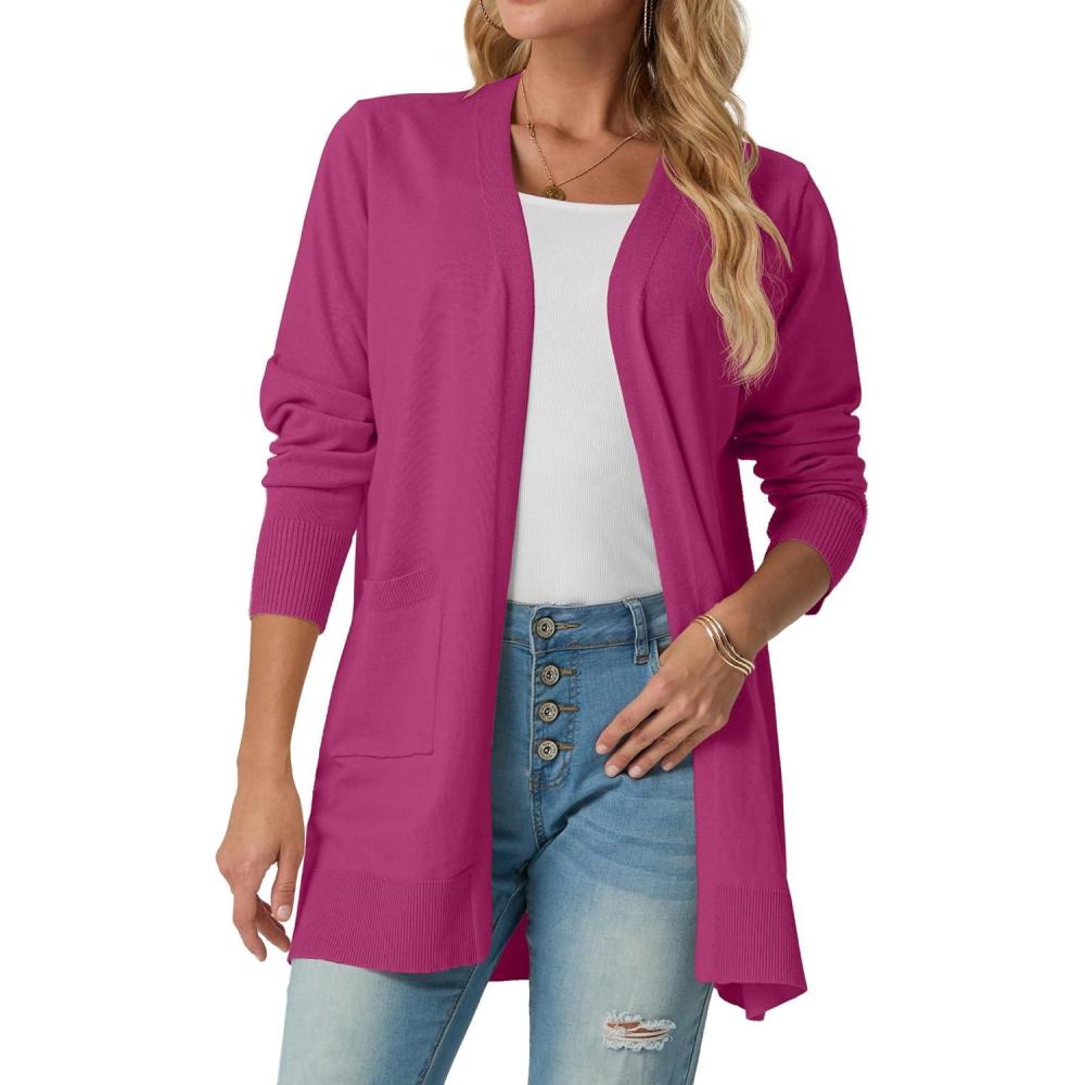 GRECERELLE Womens Lightweight Open Front Casual V-Neck Long Cardigan Sweater with Pockets, S-2XL(Hot Pink)