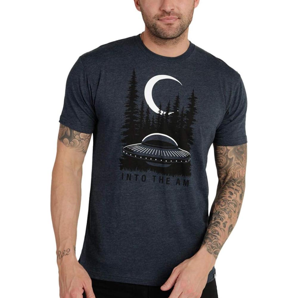 INTO THE AM Graphic Tees for Men S – 4XL Premium Short Sleeve Colorful T-Shirts Trippy Space Designs(A Extraterrestrial – Navy)