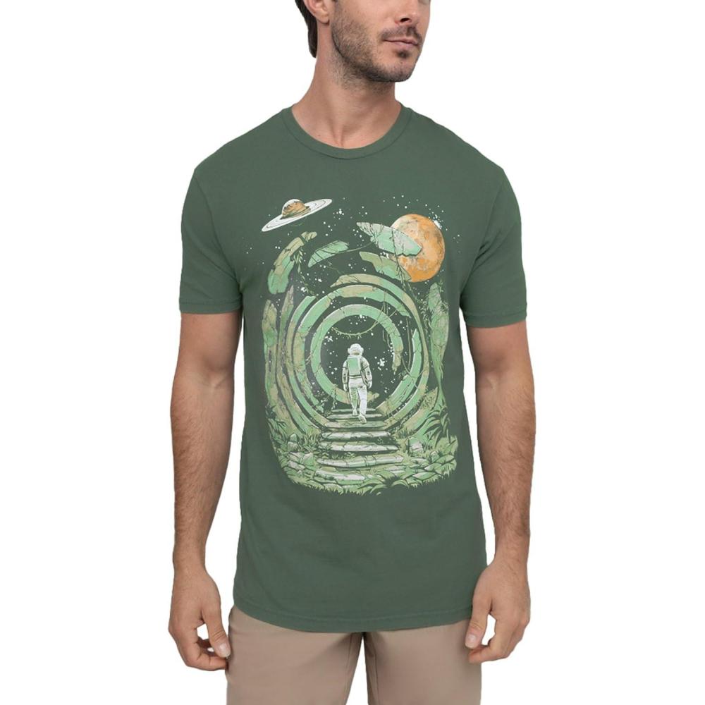 INTO THE AM Graphic Tees for Men S – 4XL Premium Short Sleeve Colorful T-Shirts Trippy Space Designs(Emerald Ridge)