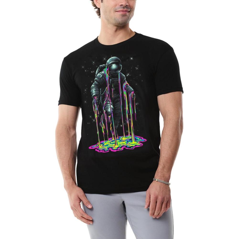 INTO THE AM Graphic Tees for Men S – 4XL Premium Short Sleeve Colorful T-Shirts Trippy Space Designs(Astral Dissolve Glow-in-the-dark)
