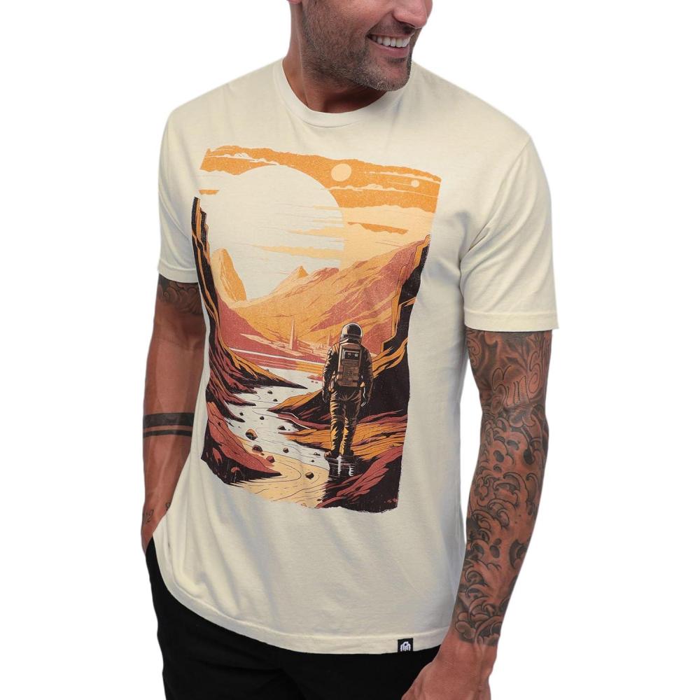INTO THE AM Graphic Tees for Men S – 4XL Premium Short Sleeve Colorful T-Shirts Trippy Space Designs(Mars Meadow Vintage)