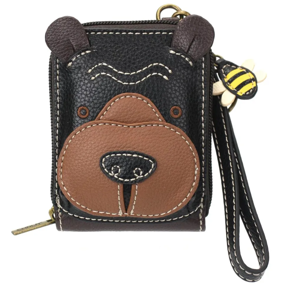 Bear Cute-C 3D Wallet RFID Protected with Bee Zipper Pull Wristlet