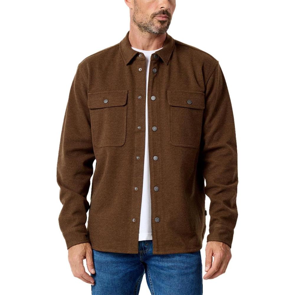 INTO THE AM Men’s Sierra Shirt Jacket S – 4XL Twill Casual Fall Fashion Long Sleeve Button Up(Brown)