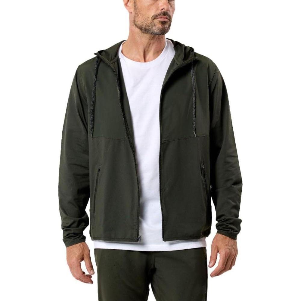 INTO THE AM Mens Windbreaker Jacket S-4XL – Lightweight Athletic Shell for Running, Gym & Outdoor(Non-branded – Midnight Olive)