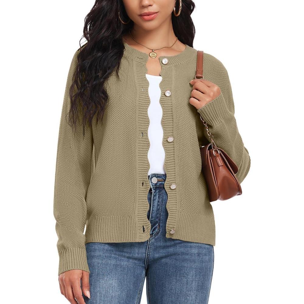 GRECERELLE Women Knit Cardigan Sweaters Long Sleeve Open Front Button Down Casual Trendy Jackets Outwear(Khaki)
