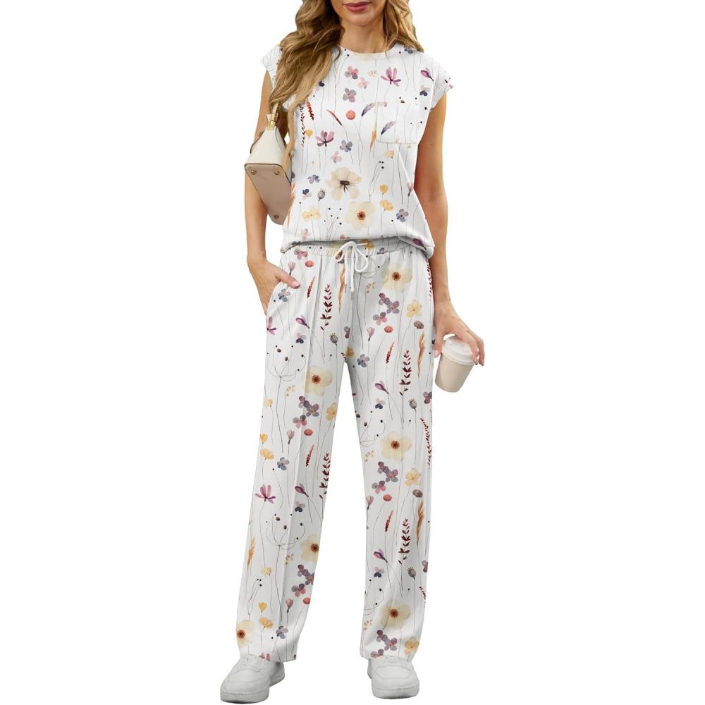 GRECERELLE 2 Piece Sets For Women Summer 2026 Outfits Lounge Sets Sleeveless Sweatsuits Wide Leg Tracksuits With Pockets(Fp-ink Lotus)