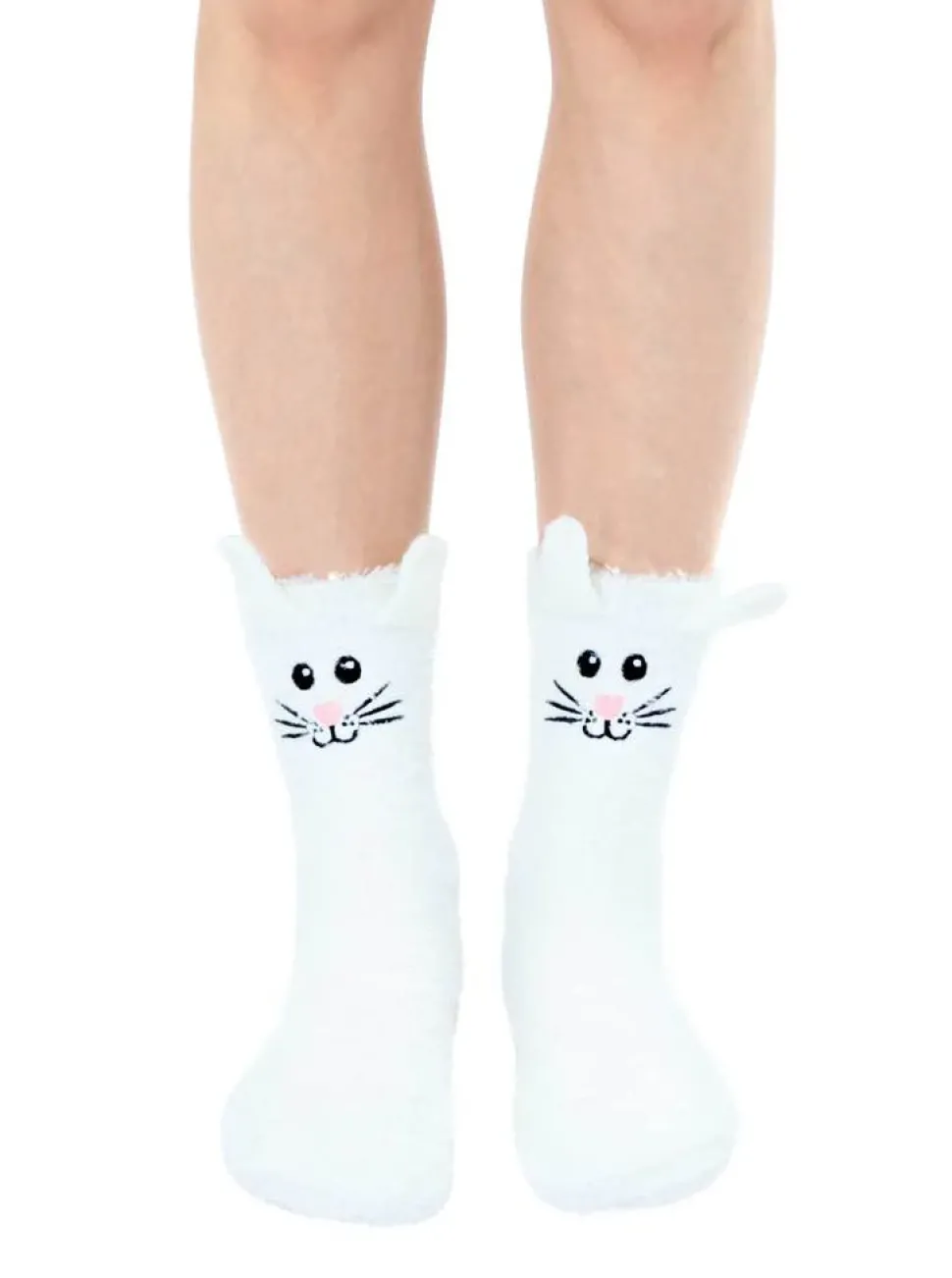 Bunny Rabbit Fuzzy Crew Slipper Socks Pink or White Soft and Fuzzy